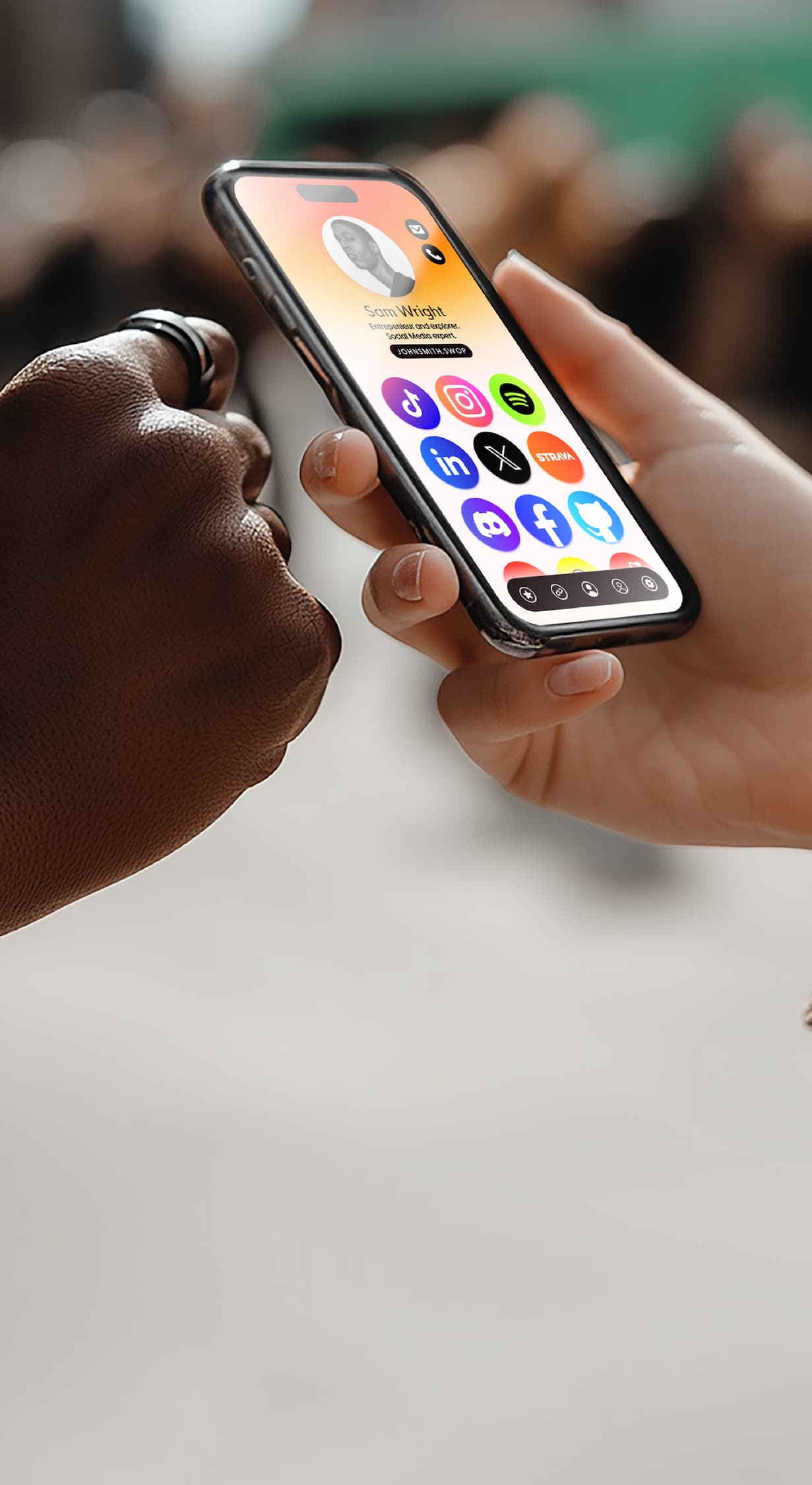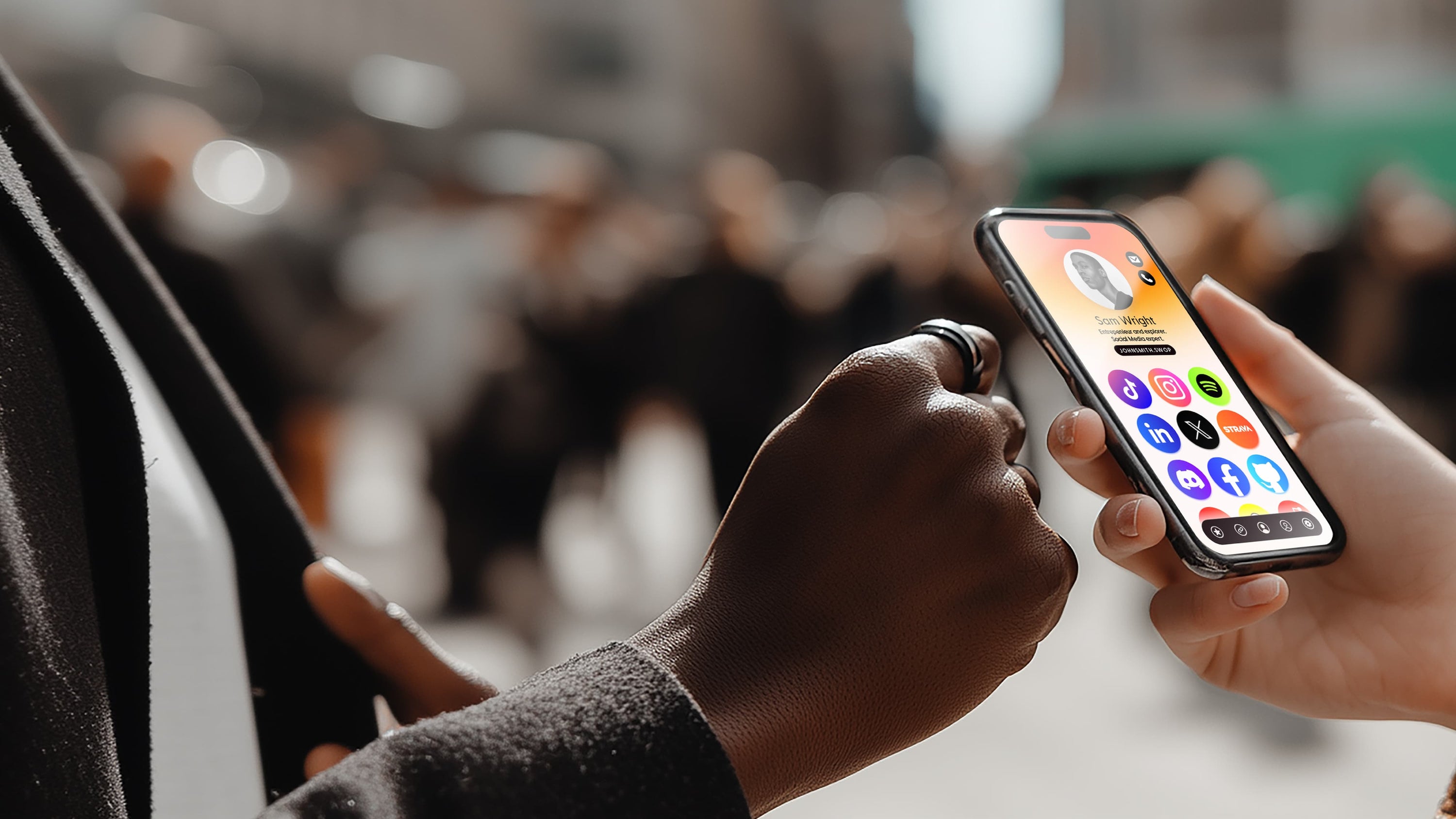 SwopBand is app connected so you can easily take your socials with you on the go and make real life connections.